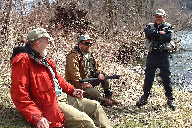 Well, we fished. The weather was almost typical Opening Day. It was actually warm when I left the house, but by the time I met the guys at the gas station, there was a genuine nip in the air. It started to rain when we were getting our waders on, and the downpours came as we got to the water.