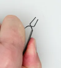 The Grffin pliers I handled are teardrop shaped, made from flat steel. They grab materials really well, but the grab comes at a price: the pliers are pretty tight to press together and open. The jaws also only opens slightly, and passing them over thicker materials like yarn or a fluffy feather might be a problem. That makes them quite awkward to use, particularly on brittle materials, where it's difficult to release them without using a lot of force and risk tearing or breaking something.