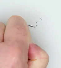 The tool really comes into its right when wrapping fluffy feathers such as marabou and in particular CDC, which is Petitjean's trademark material, but can also grab hackle stems and tips. But it's not quite as elegant and easy to use when you need to grab really delicate and soft hackle tips or barbs on short feathers such as partridge or golden pheasant. Once it sits there, it's usually locked very well in place. Getting a hold of the finest things such as tying thread or single flash straws is almost impossible. These just slide between the coils of the spring. Thicker materials like zonker strips are also a no go. They simply won't fit into the narrow hook.