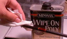 - So I get the rod turning, soak a small section of wiping rag with the poly and just hold it over the spot while the rod is turning, being careful to get total coverage. Once the area is wet, walk away for an hour or so until it dries. Three coats and I'm good to go.