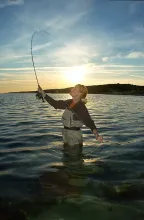 You also want some water, and preferably enough of it for you to get in the water and still have a good distance to the caster, who will be casting with his or her side to you. There aren't many places like that out there, so if you find it, note it for future casting pictures.