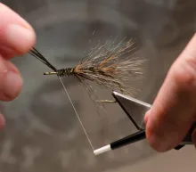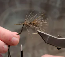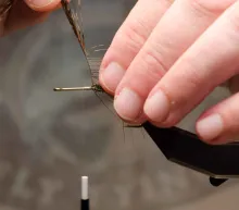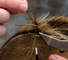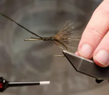 The finely speckled Gallo de Leon feathers give this fly a look not far from the classic Tippet Grub, but with the traits of a modern coastal fly. The large hackle makes the fly unwilling to break the surface and makes it sink very slowly, so adding some weight in the form of tungsten foil under the body or eyes in the front is an idea if you want it to penetrate the water column better.