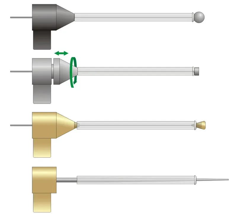 4) The bottom one is a needle, which simply holds the tube by simple friction against the inside of the tube.