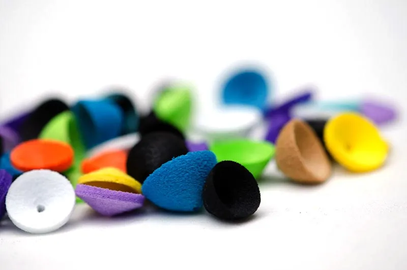Tube fly cones in two basic shapes (softcones and multicones) and several sizes and many colors made from foam.