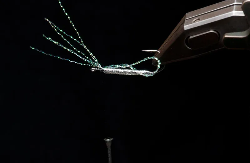 Add 3-4 straws of Krystal Flash folded over to begin the false hackle