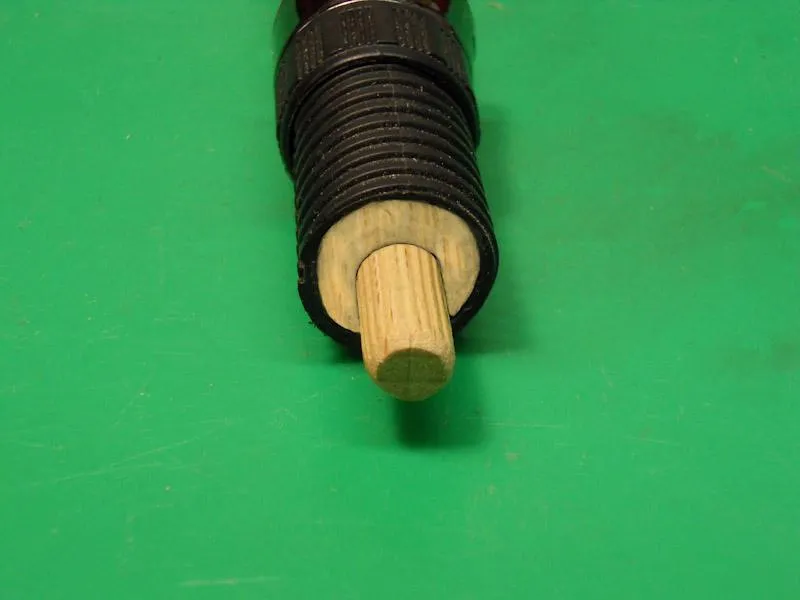 The cylindrical pieces are glued in the reel-holder, the dowel not