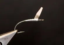 In the case that the weight is used to shape the fly, like tying in shaped foil flat to form a foundation for a flattened body, glue or LCR may be the only way to get it to fasten without being crushed under the tension of the thread, but as always, it’s thread that’s your safest bet to get it to stick.
