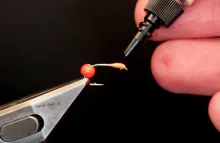 After that, it’s allowed to set or dry, and I can then finish the fly on the hook shank behind it. In most cases I even build a thread dam in the rear when I start the thread again, giving it an extra obstacle, should the bead or cone come loose and want to move.